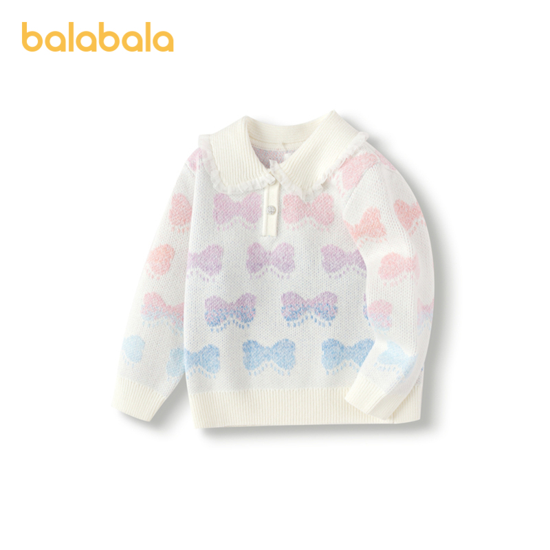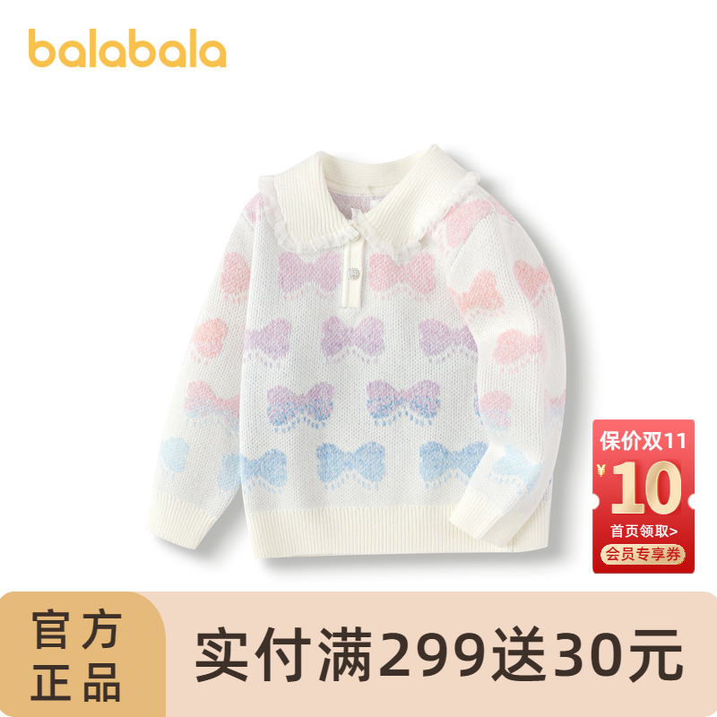 【商场同款】巴拉巴拉女童毛衣蝴蝶结提花针织衫2024秋冬新款内搭