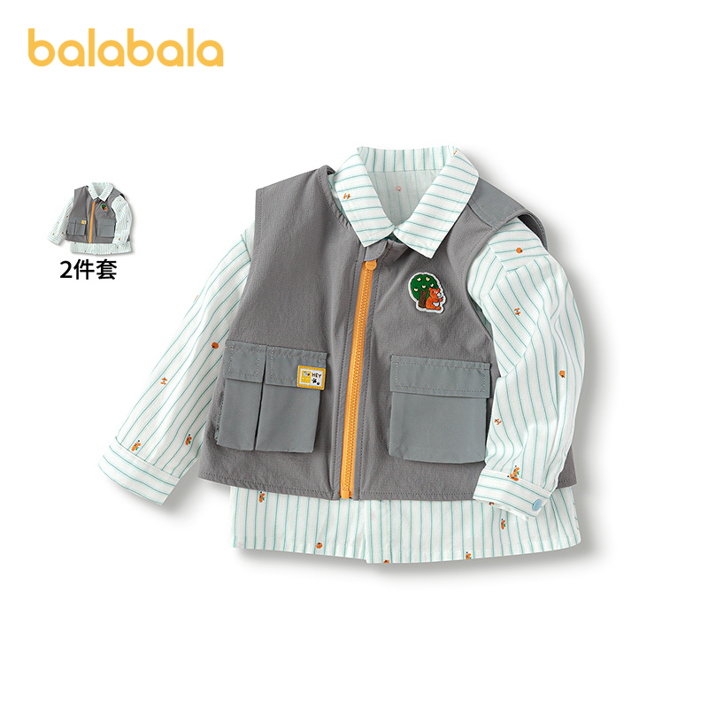 【商场同款】巴拉巴拉宝宝长袖衬衫两件套男童2025新款春装时尚潮