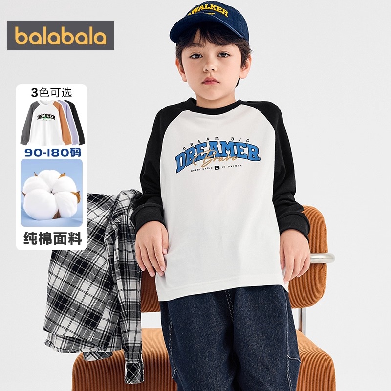 巴拉巴拉童装儿童长袖t恤男童女童2025秋季新款纯棉上衣打底衫