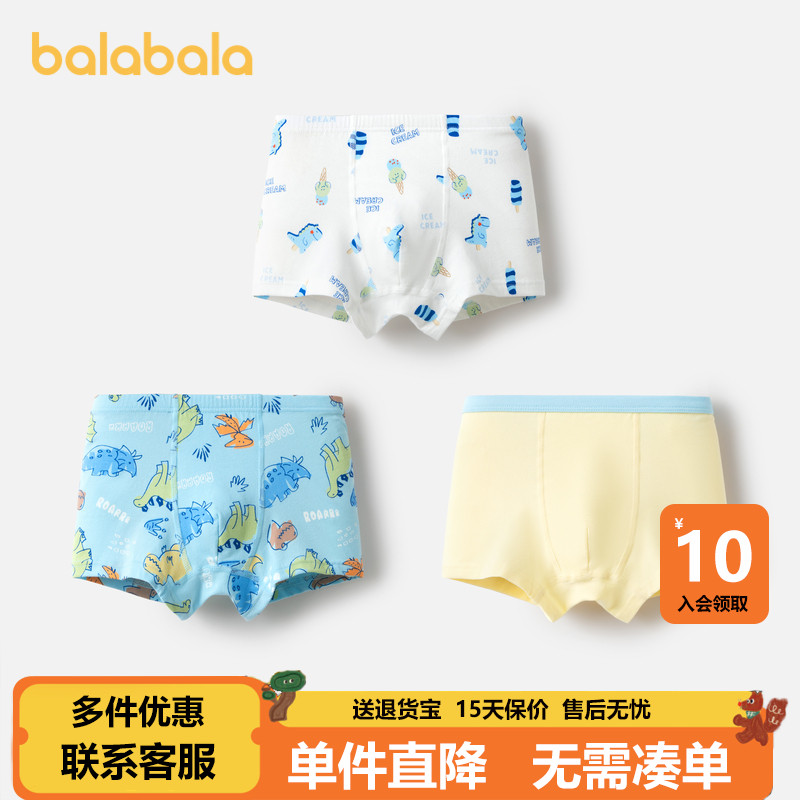 巴拉巴拉男童内裤棉a类儿童平角短裤小童宝宝亲肤四角抗菌三条装