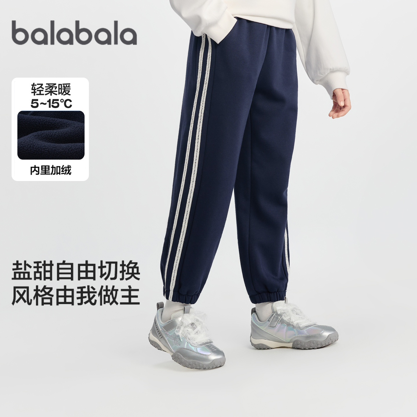 巴拉巴拉保女童暖长裤儿童加绒运动裤2025冬装新款童装大童束脚裤