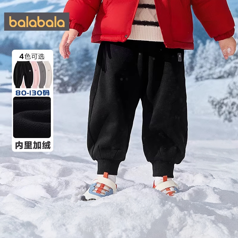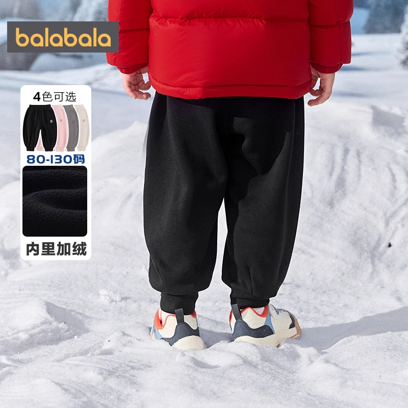 巴拉巴拉宝宝加绒裤子男童女童运动卫裤秋冬款童装儿童外出长裤厚
