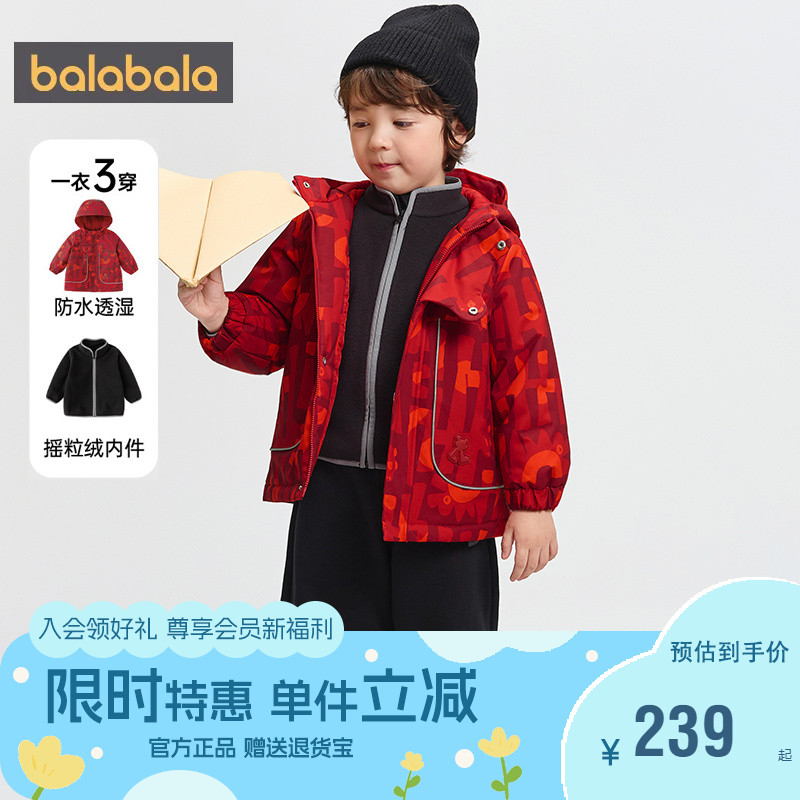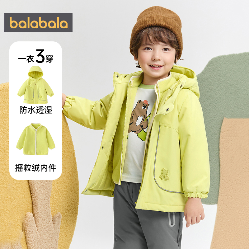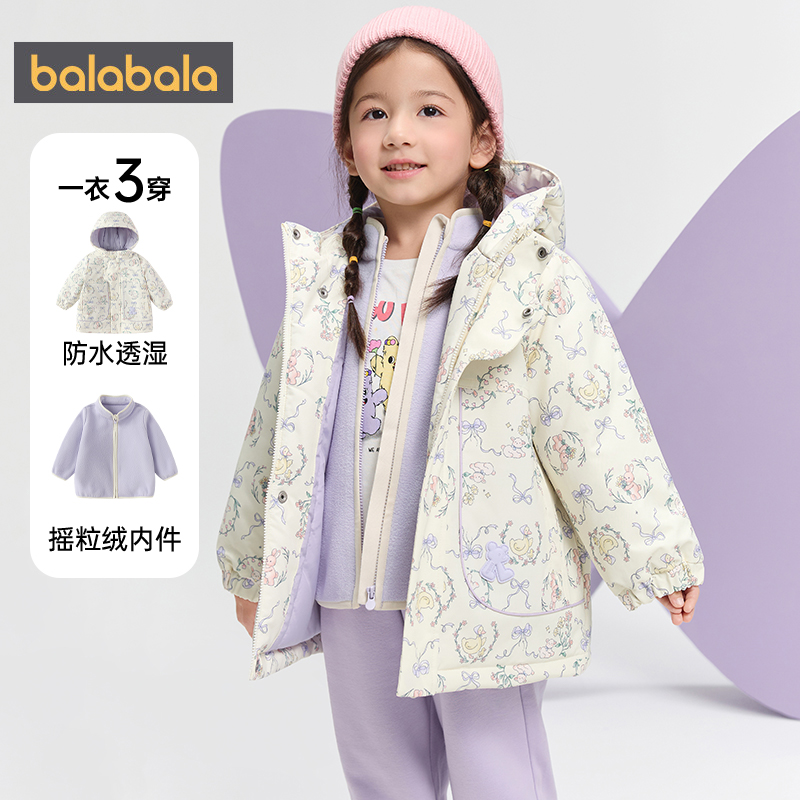 巴拉巴拉童装儿童棉服男童女童三合一棉衣外套冬装2025新款摇粒绒