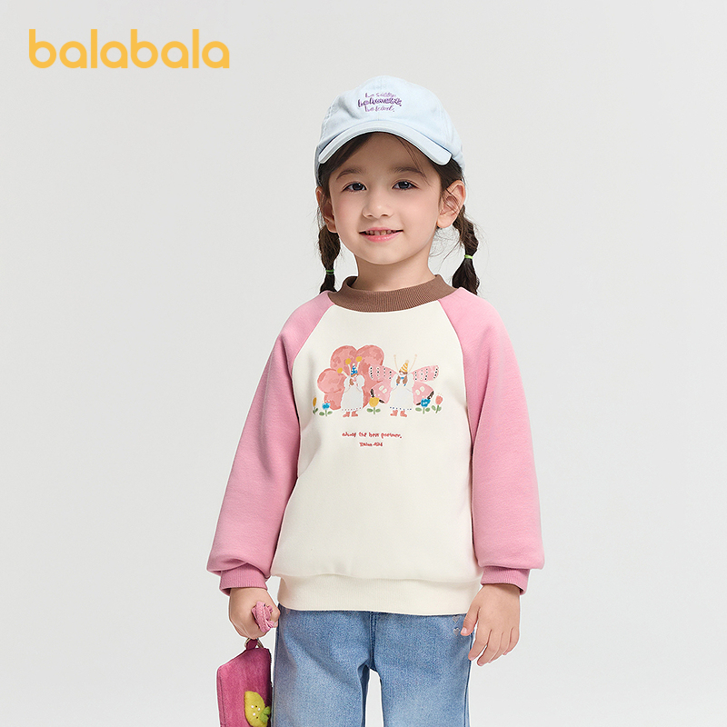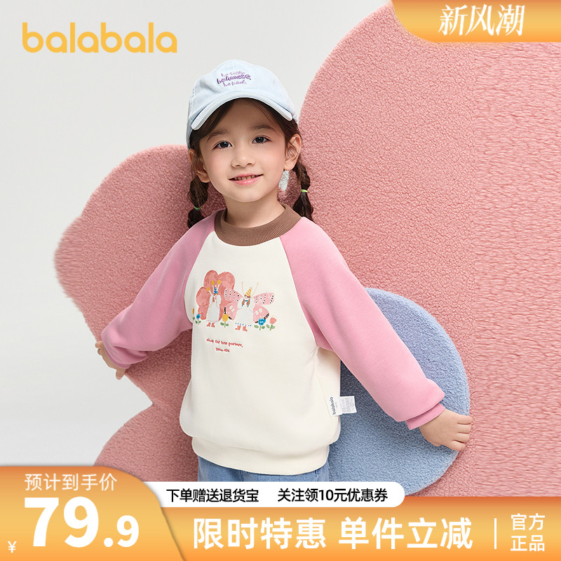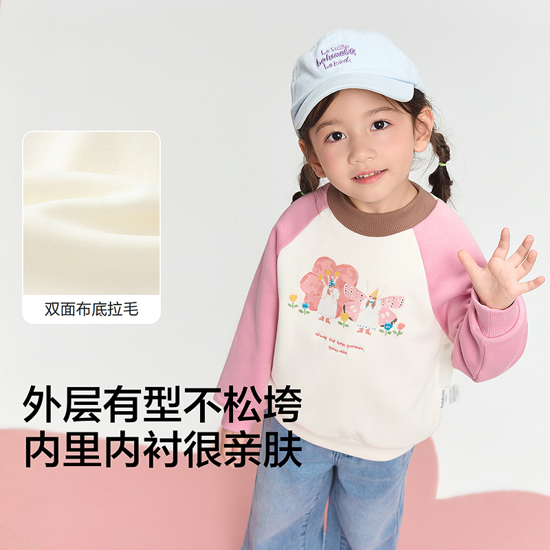 巴拉巴拉童装女童卫衣插肩袖上衣秋冬儿童小童甜美印花休闲装洋气