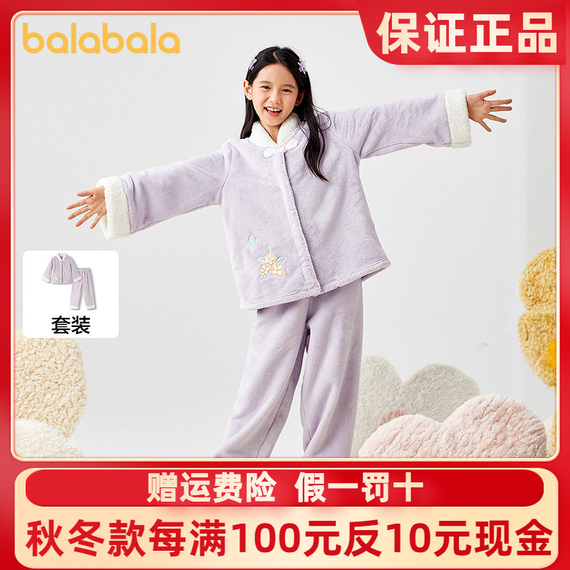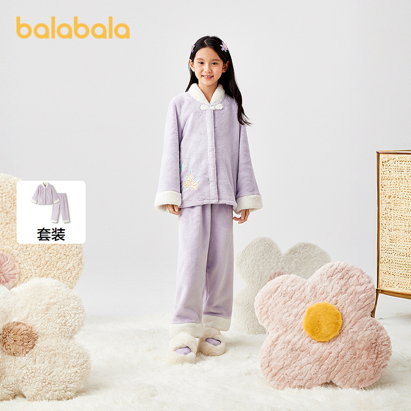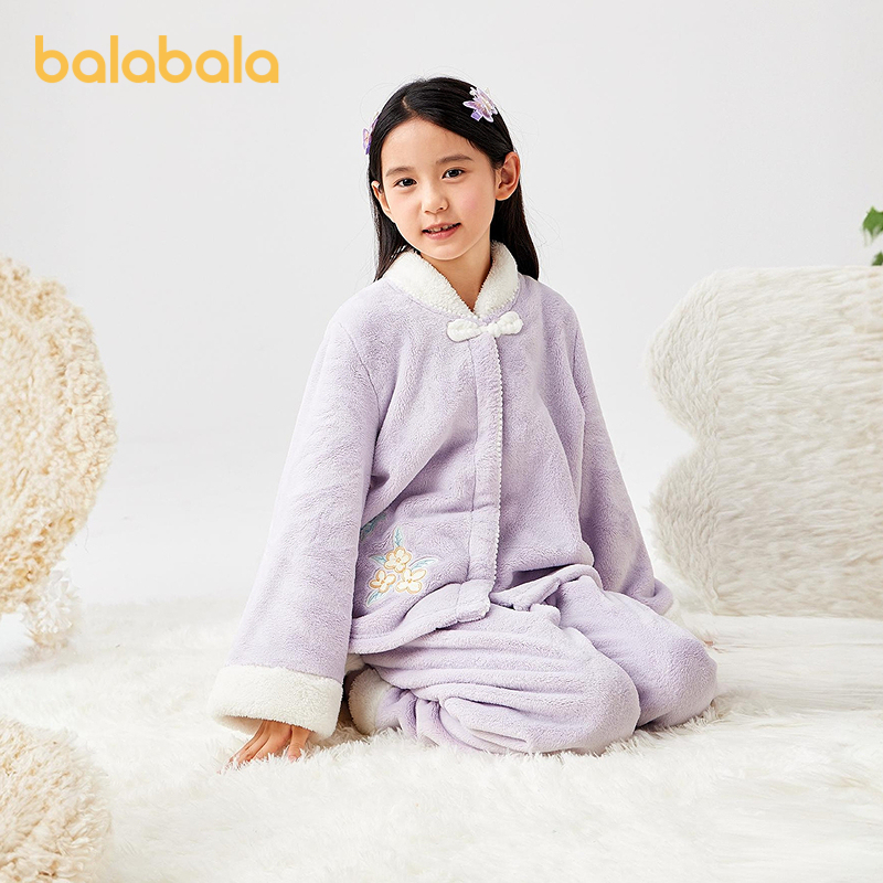 巴拉巴拉balaOne女童睡衣套装2025冬新款加厚法兰绒保暖国风盘扣