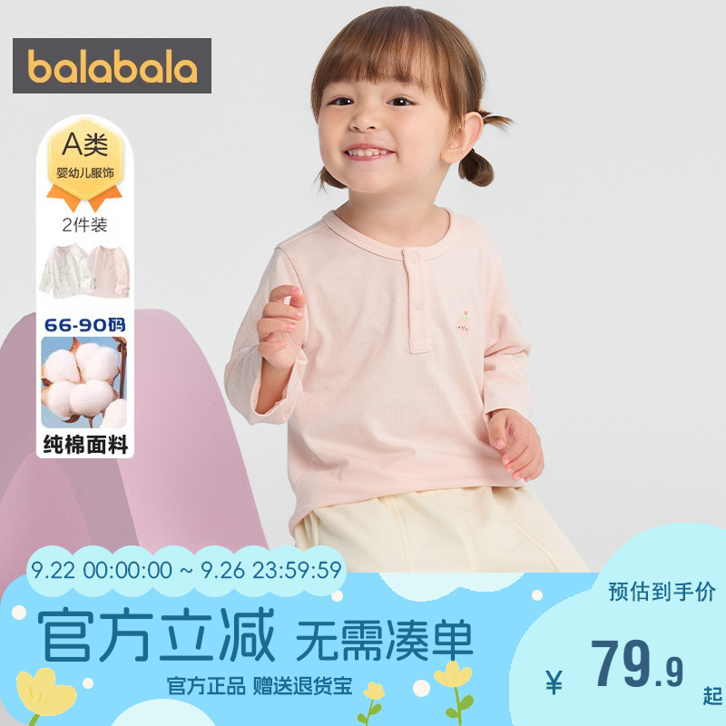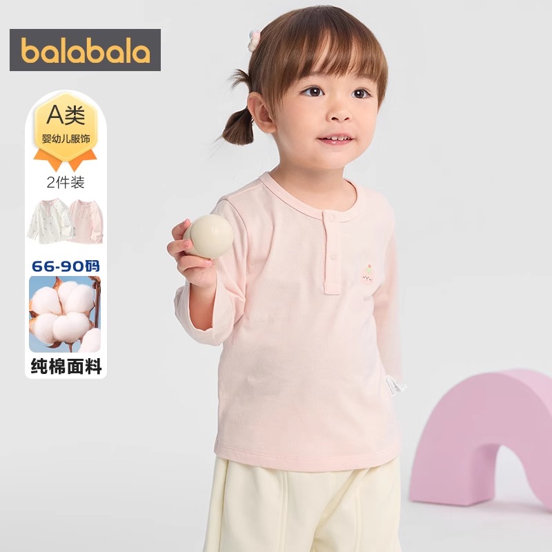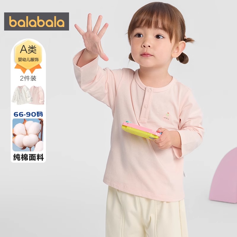巴拉巴拉儿童t恤男宝长袖女童上衣打底衫2025新款秋装两件装简约