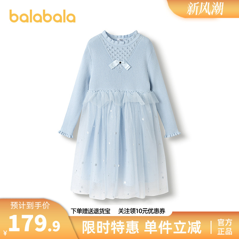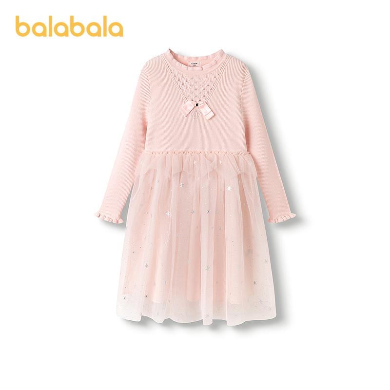 巴拉巴拉balaOne童装儿童连衣裙女2025秋冬新款公主裙针织网纱裙