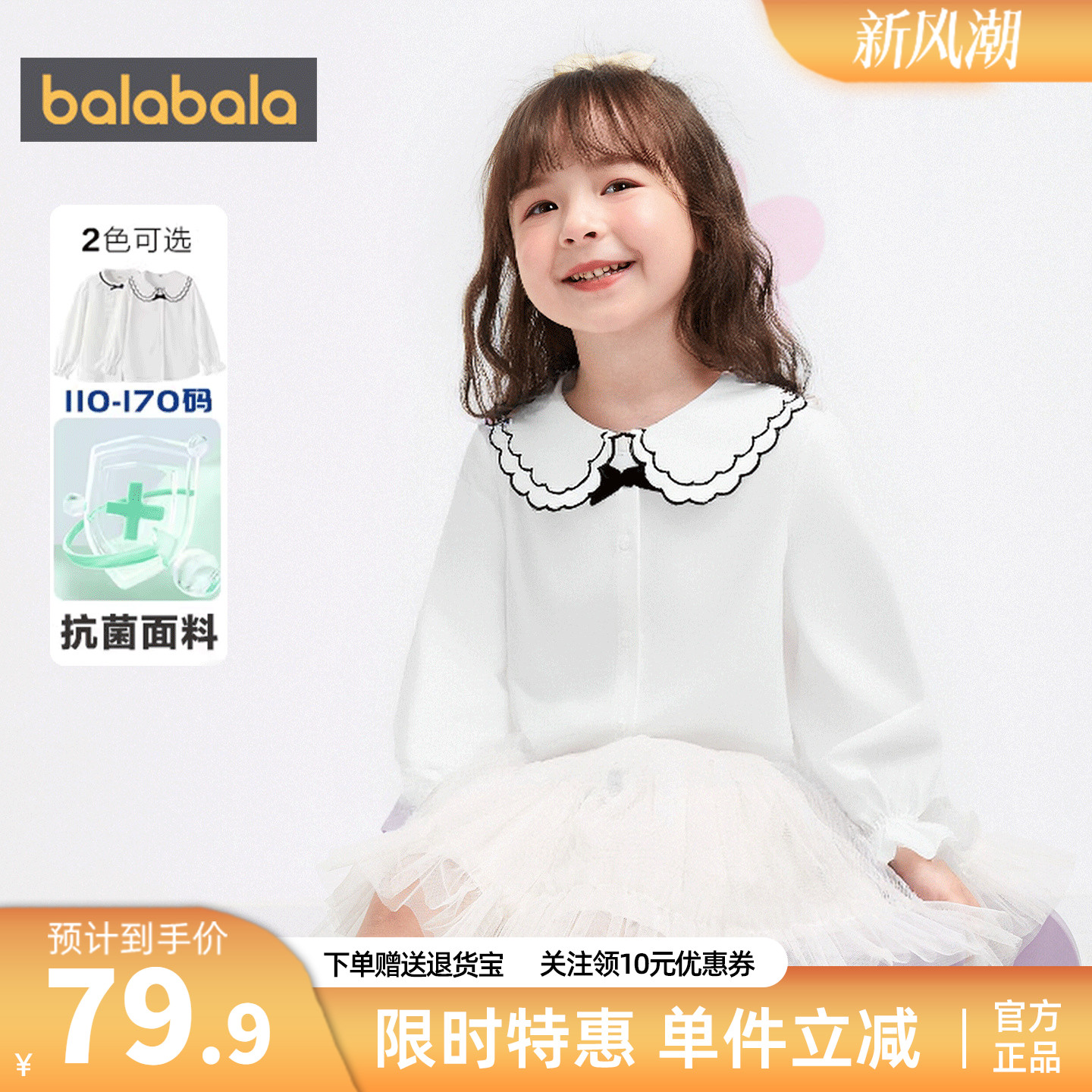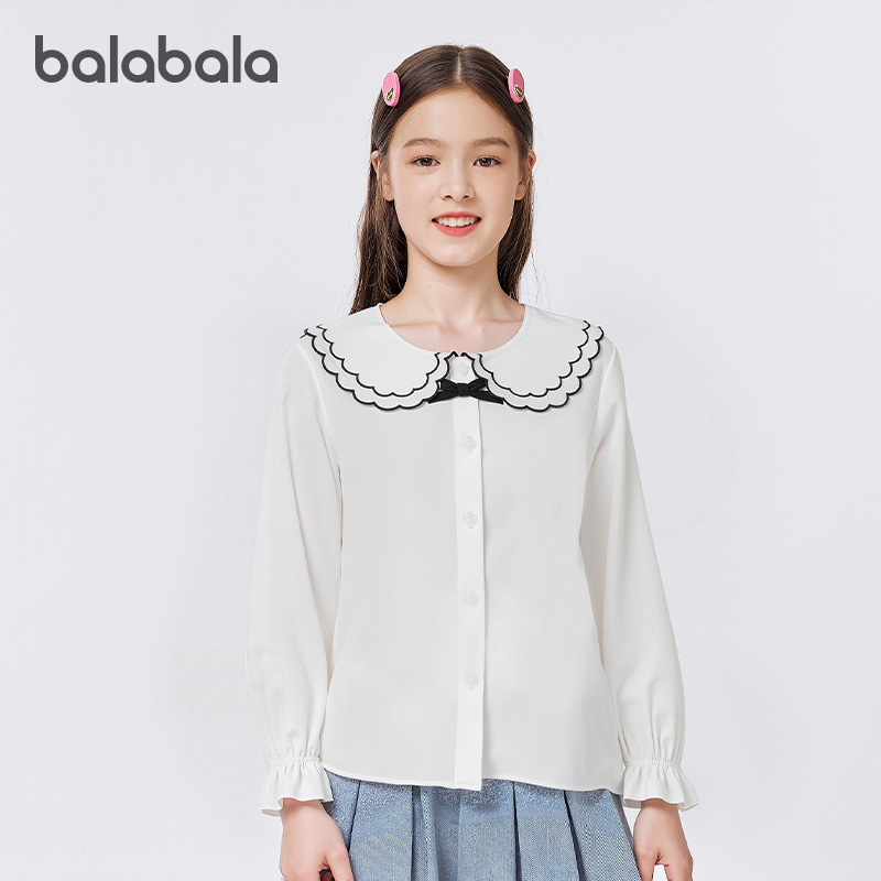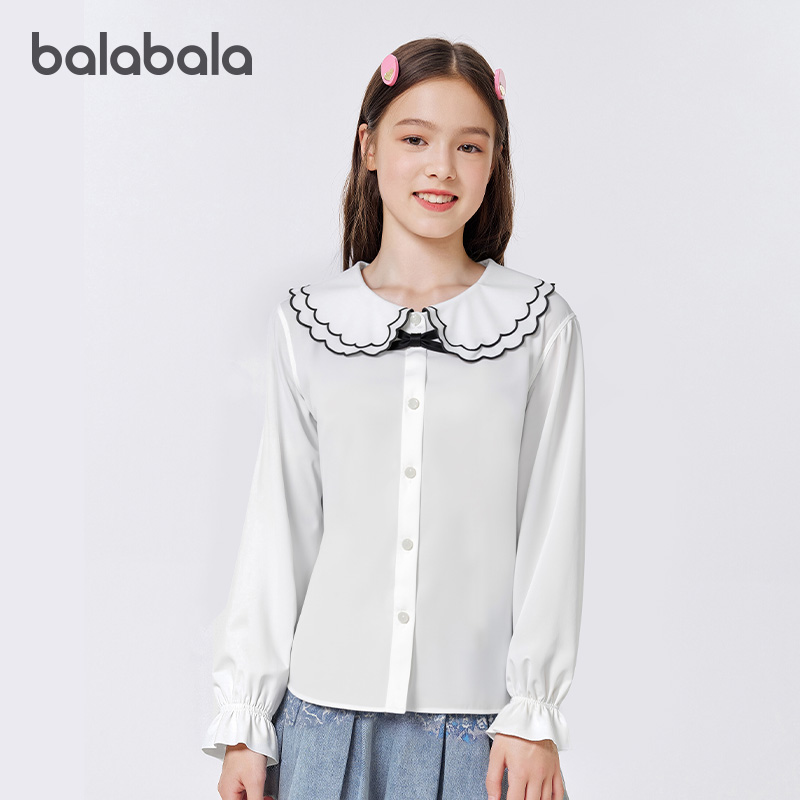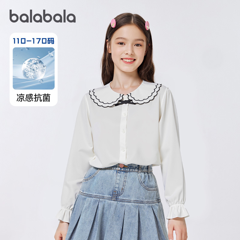 巴拉巴拉女童衬衫儿童长袖2025新款秋装学院风凉感抗菌柔软易打理