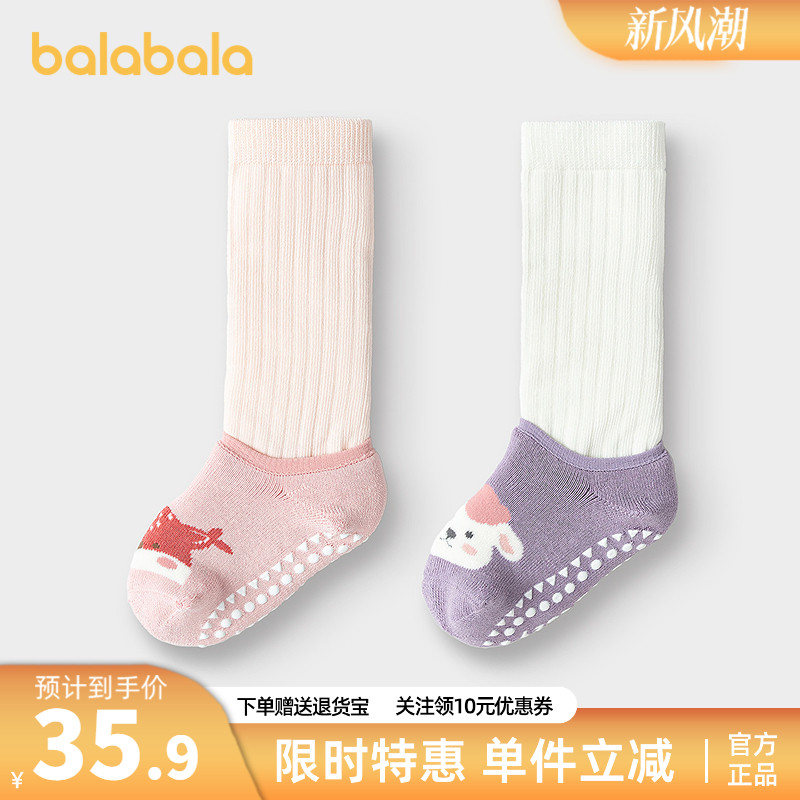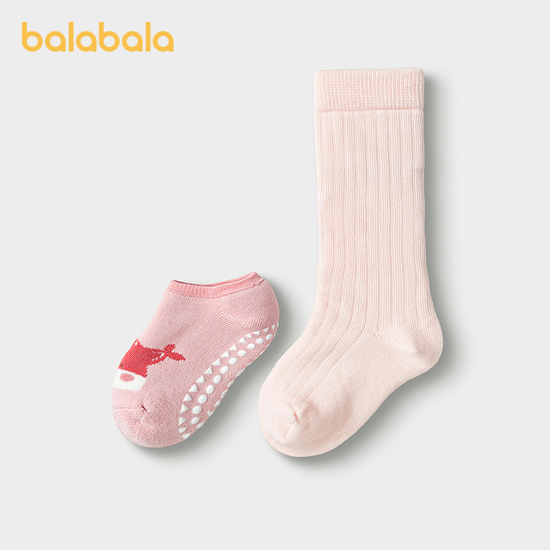 巴拉巴拉balaOne宝宝袜子冬保暖袜婴幼儿中筒袜防着凉提花两件套
