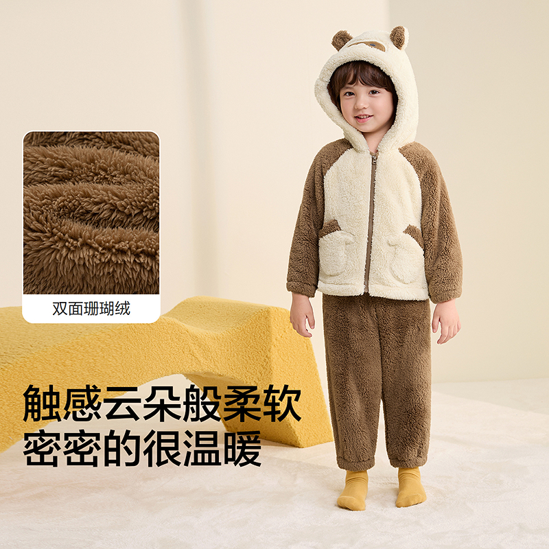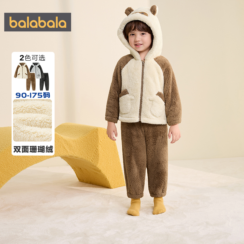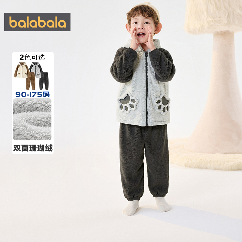 巴拉巴拉童装男童家居服套装儿童珊瑚绒睡衣秋冬款中大童宝宝保暖