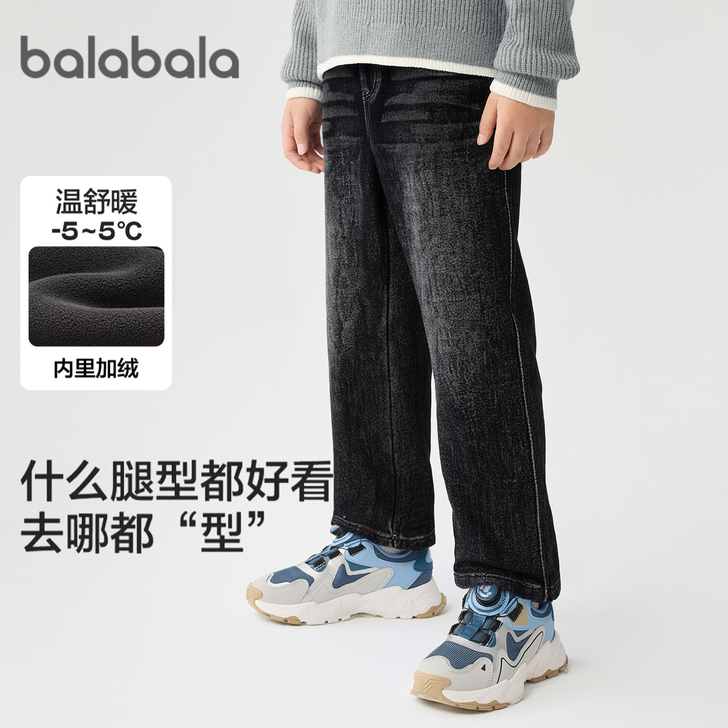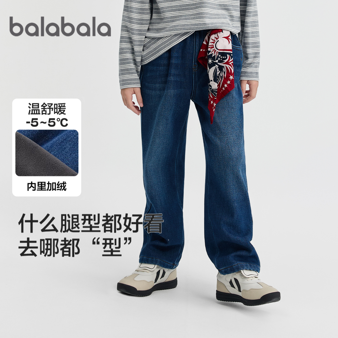巴拉巴拉男童加绒牛仔裤中大童裤子2025秋冬装新款童装儿童直筒裤