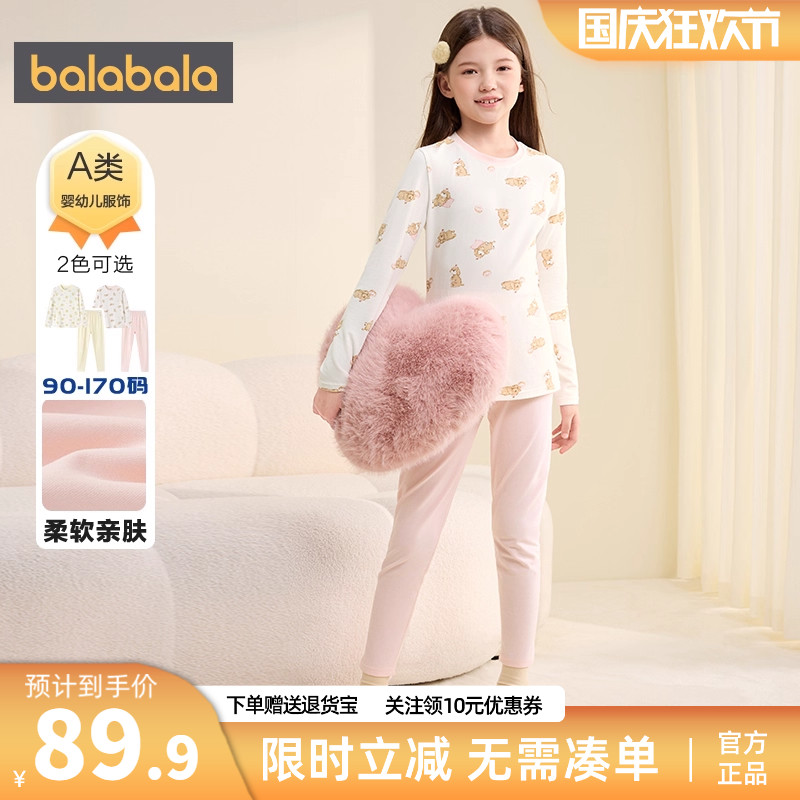巴拉巴拉女童内衣套装中大童睡衣冬装2025新款童装儿童保暖秋衣裤