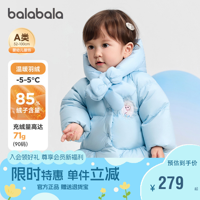 巴拉巴拉迪士尼IP婴儿羽绒服女童宝宝加厚外套儿童2025冬装艾莎