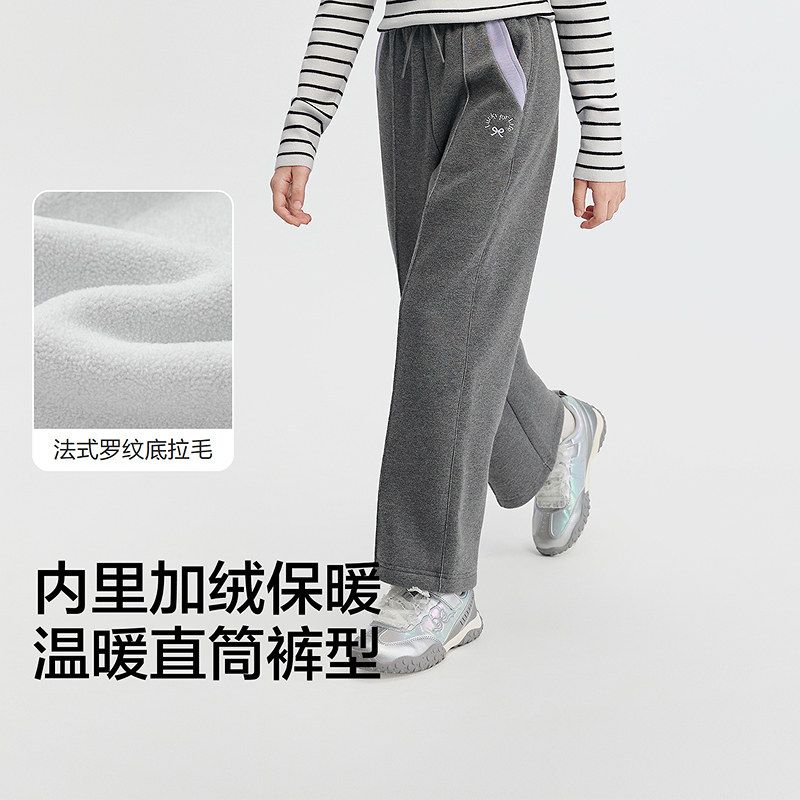 巴拉巴拉balaOne童装女童加绒直筒儿童裤子2025冬装新款撞色拼接