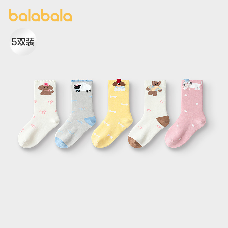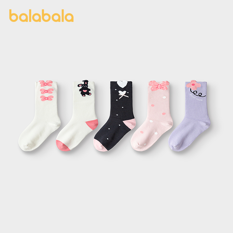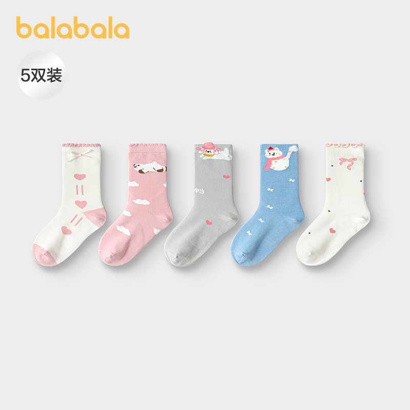 巴拉巴拉balaOne儿童袜子秋冬女棉袜儿童宝宝中大童甜美袜五双装