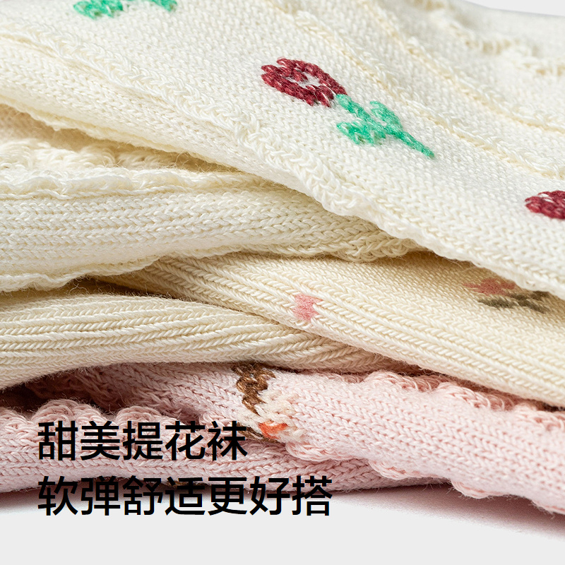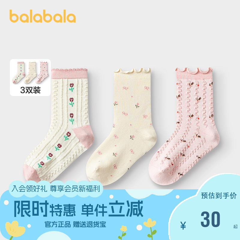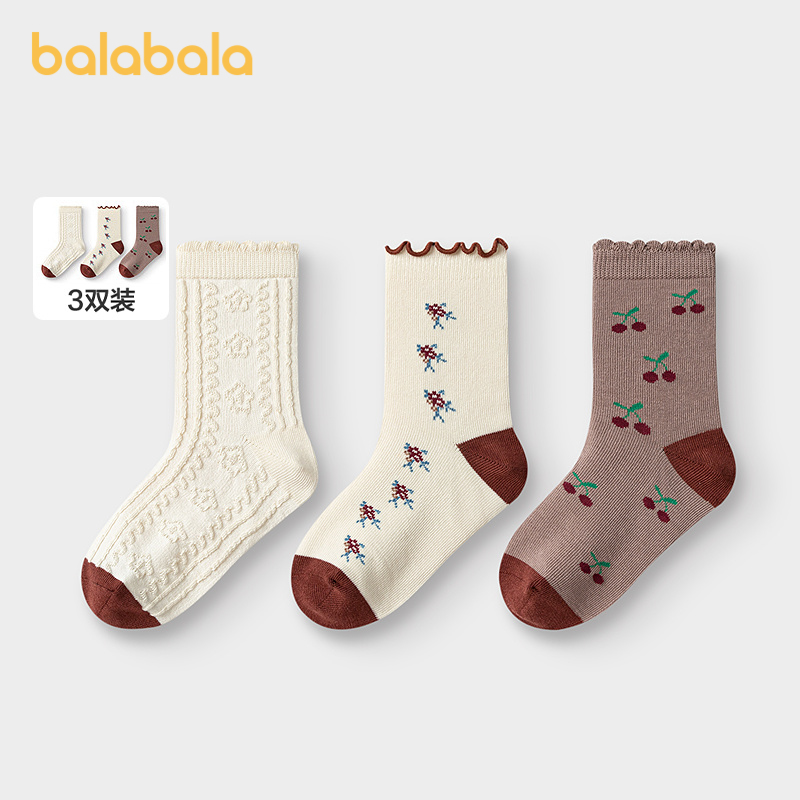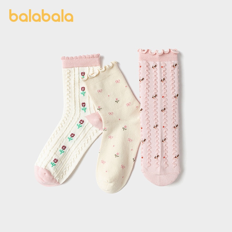 巴拉巴拉女童袜子秋季新品儿童中筒袜学生袜不勒脚甜美提花三双装