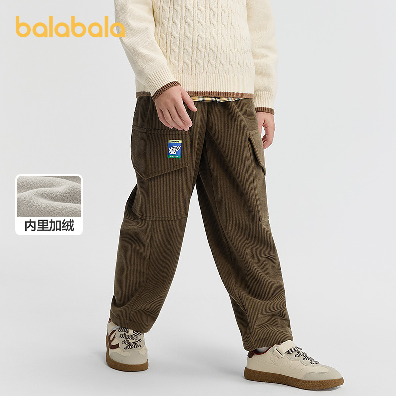巴拉巴拉儿童加绒裤子男童女童灯芯绒长裤冬装2025新款童装工装裤