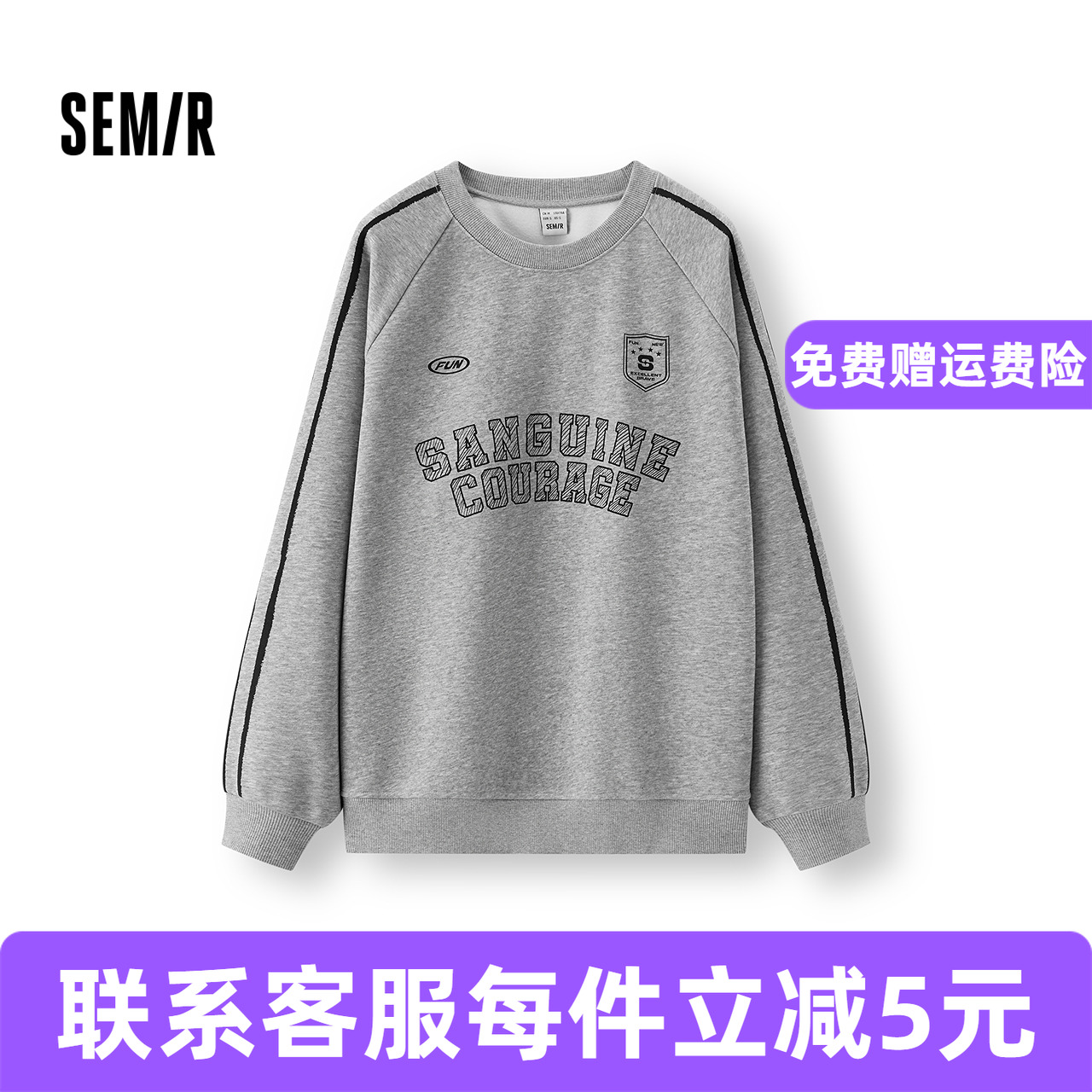 森马卫衣男冬加绒内搭2025新款复古运动风撞色印花情侣装oversize