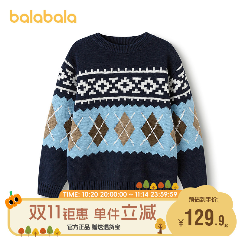巴拉巴拉童装儿童毛衫男童2025新款冬装费尔岛毛衣亲子款