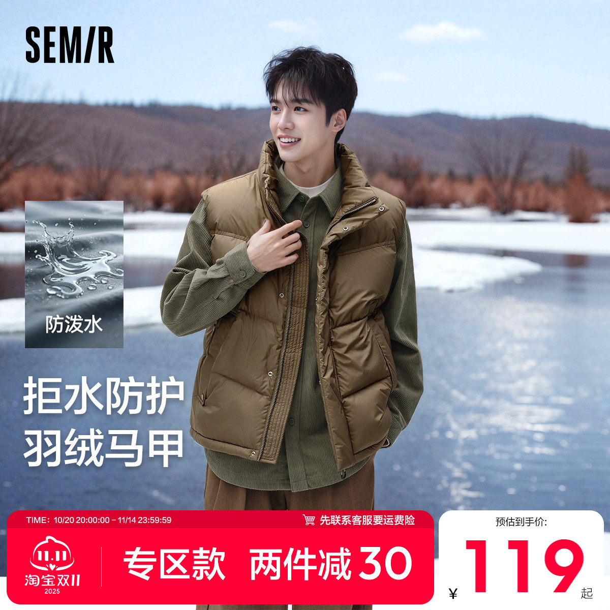 [商场同款]森马羽绒马甲男冬季新款宽松防水外套休闲情侣装百搭潮