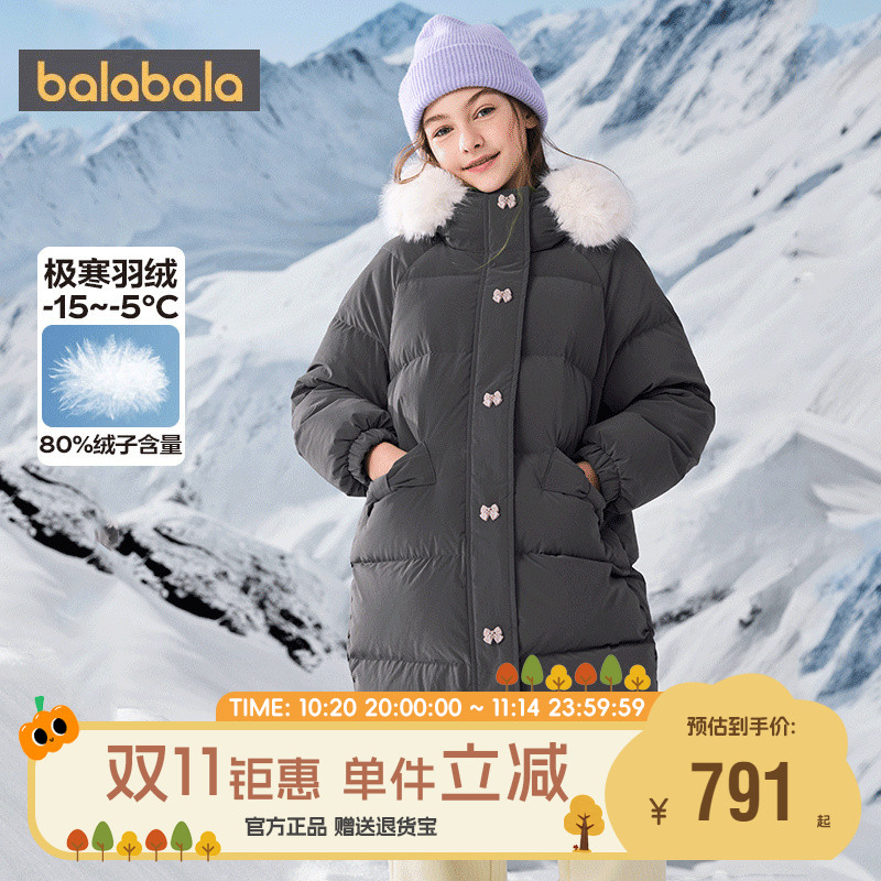 巴拉巴拉童装商场同款女童羽绒服2025年新款加厚长款外套冬季