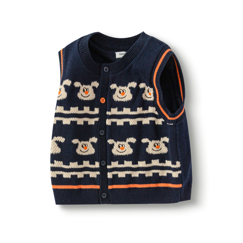 巴拉巴拉宝宝马甲冬装男童针织背心动物提花可爱萌趣时尚潮酷洋气