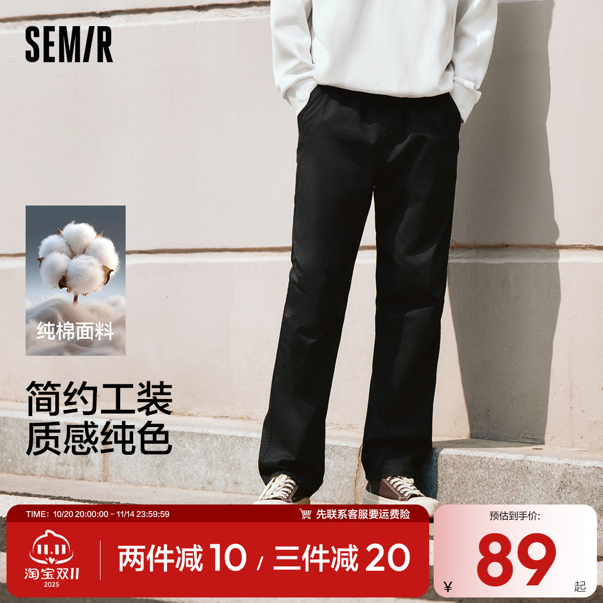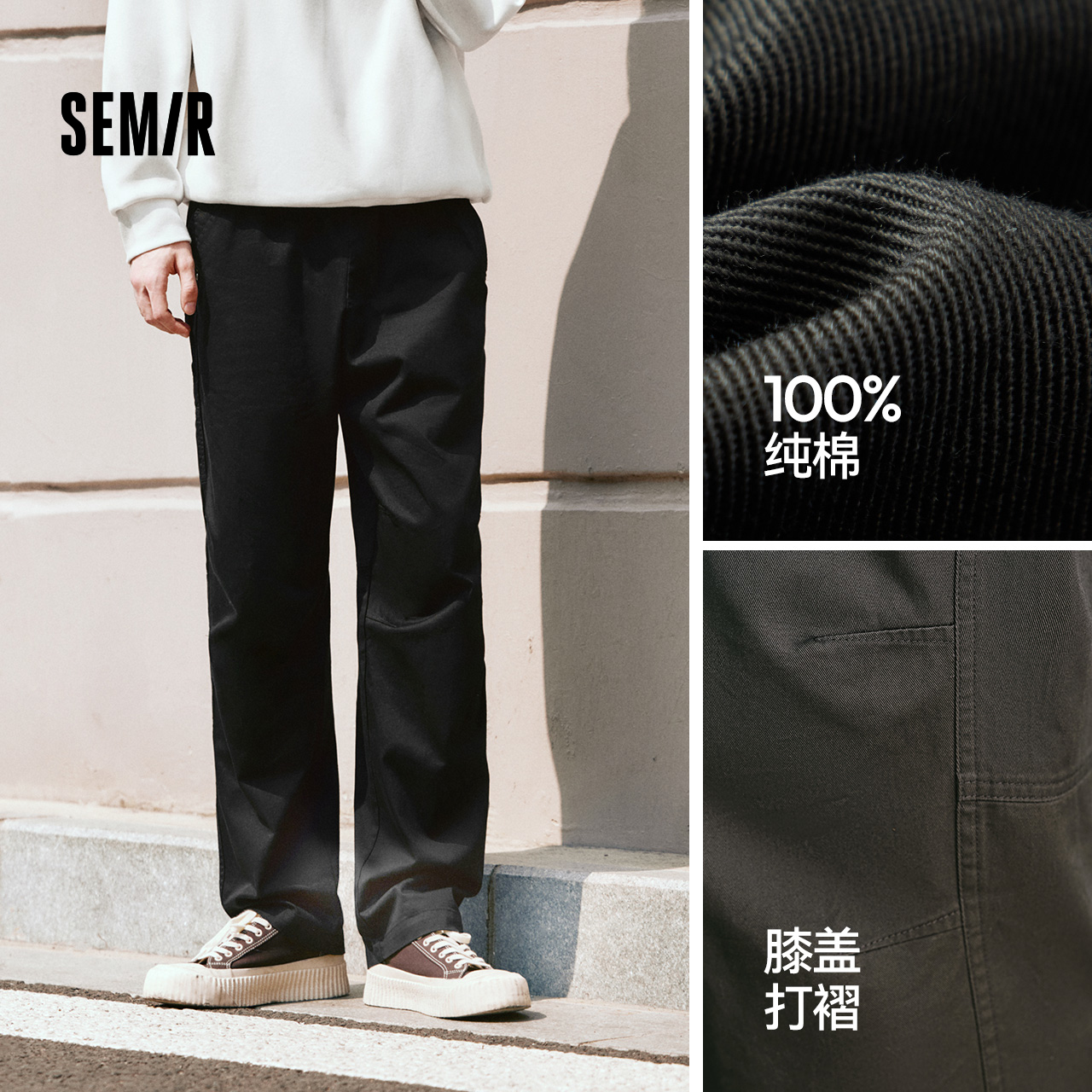 [商场同款]森马休闲裤男2025秋季新款工装裤纯色百搭宽松直筒裤子
