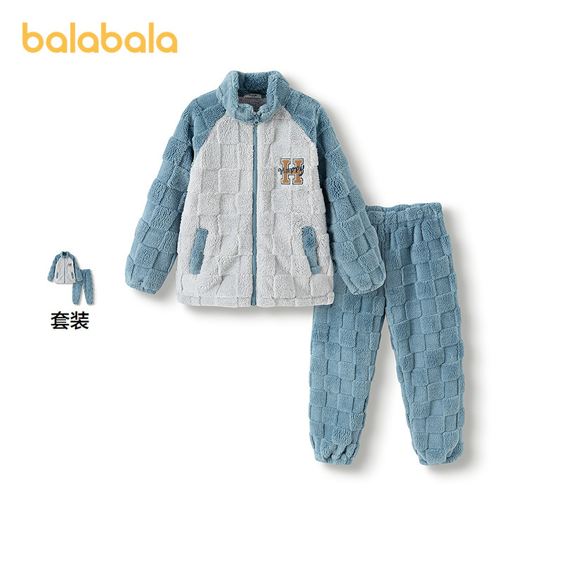 巴拉巴拉儿童睡衣套装冬加厚珊瑚绒男童家居服可外出保暖舒适时尚