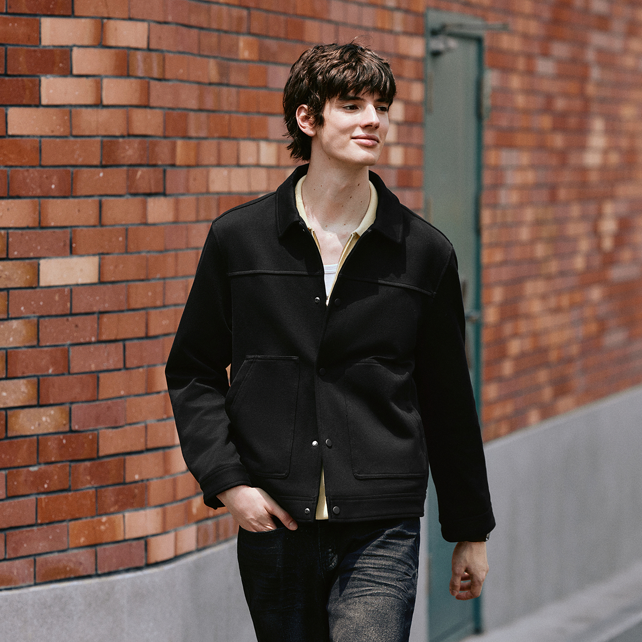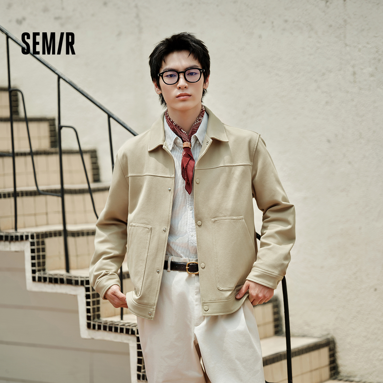 [商场同款]森马外套男2025秋季新款纯色百搭针织夹克工装上衣通勤
