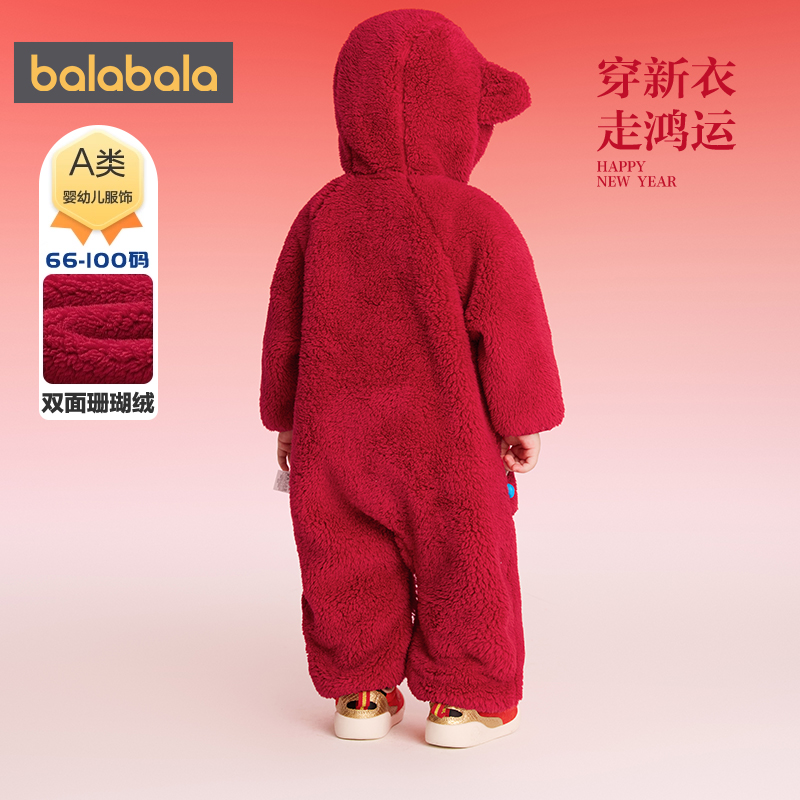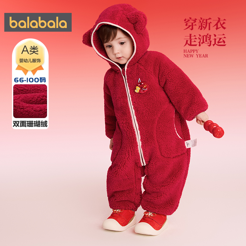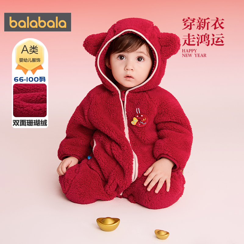 巴拉巴拉宝宝连体衣婴儿红色新年款衣服冬装2025新款童装外出哈衣