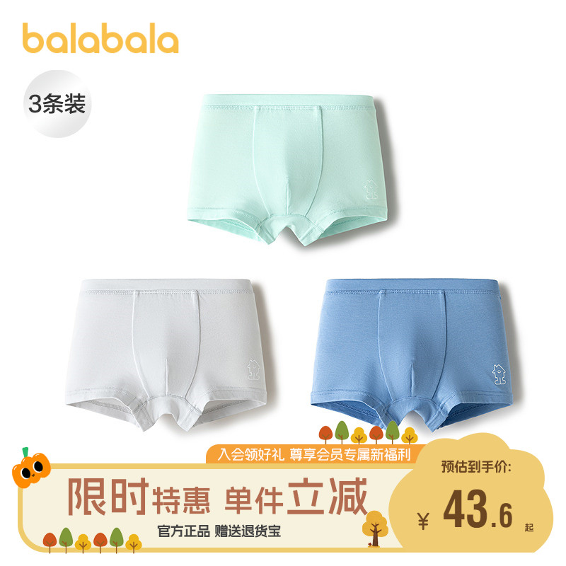 巴拉巴拉儿童内裤四角棉男童短裤宝宝四角裤不夹PP三条装