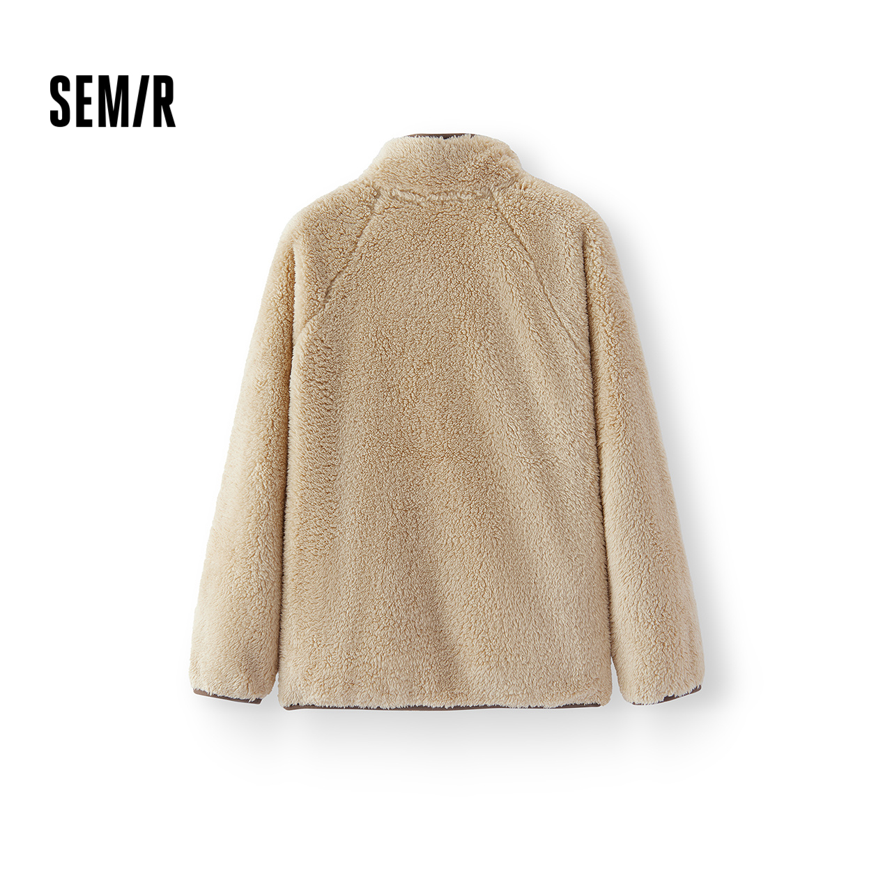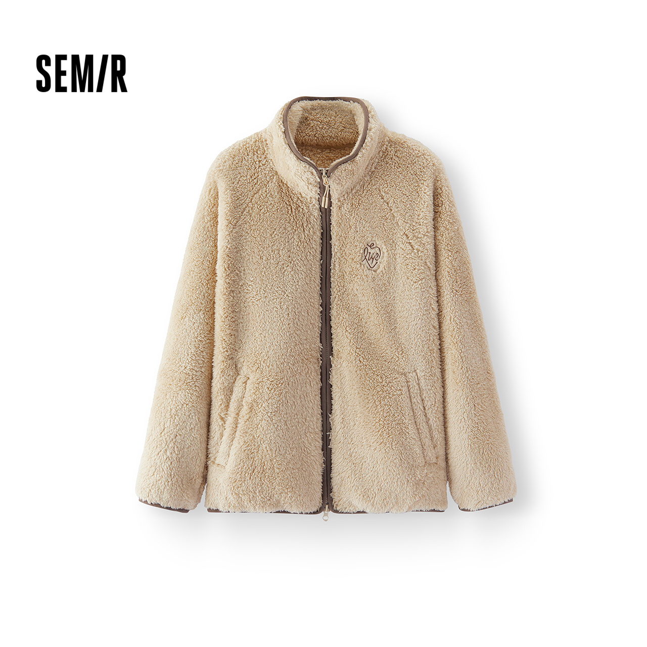 森马外套女冬季珊瑚绒插肩袖宽松立领绣花2025新款温柔风潮流夹克