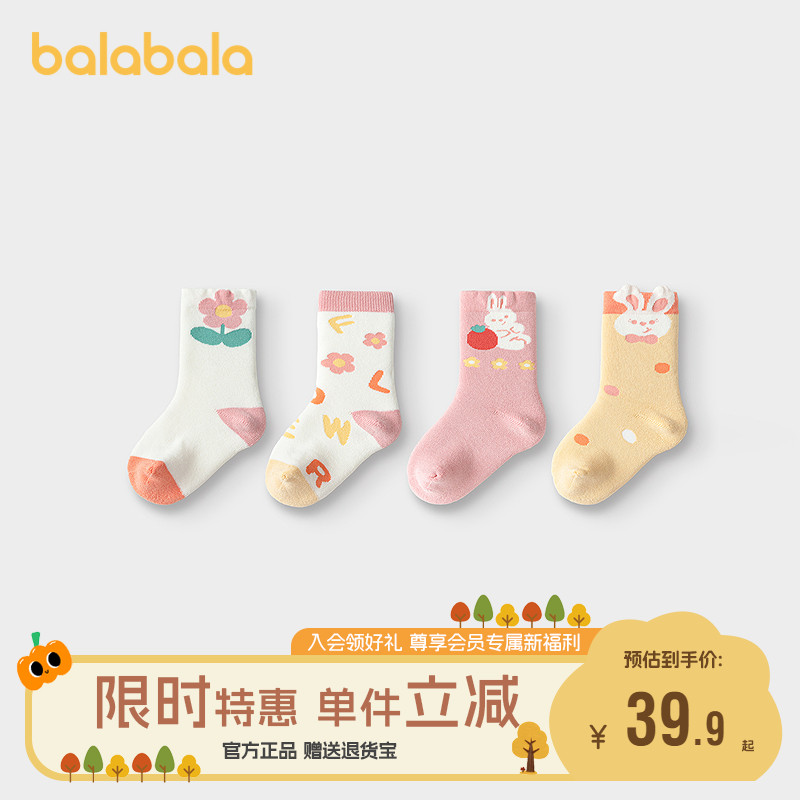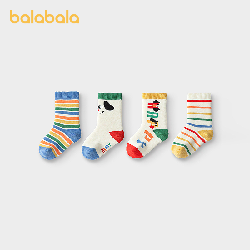 巴拉巴拉balaOne宝宝袜子冬季儿童毛圈袜小童萌趣棉袜保暖四双装