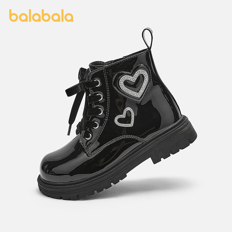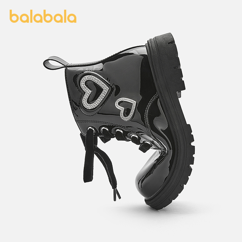 【balaOne】巴拉巴拉童鞋女童马丁靴亮面2025新款春秋靴子拉链款