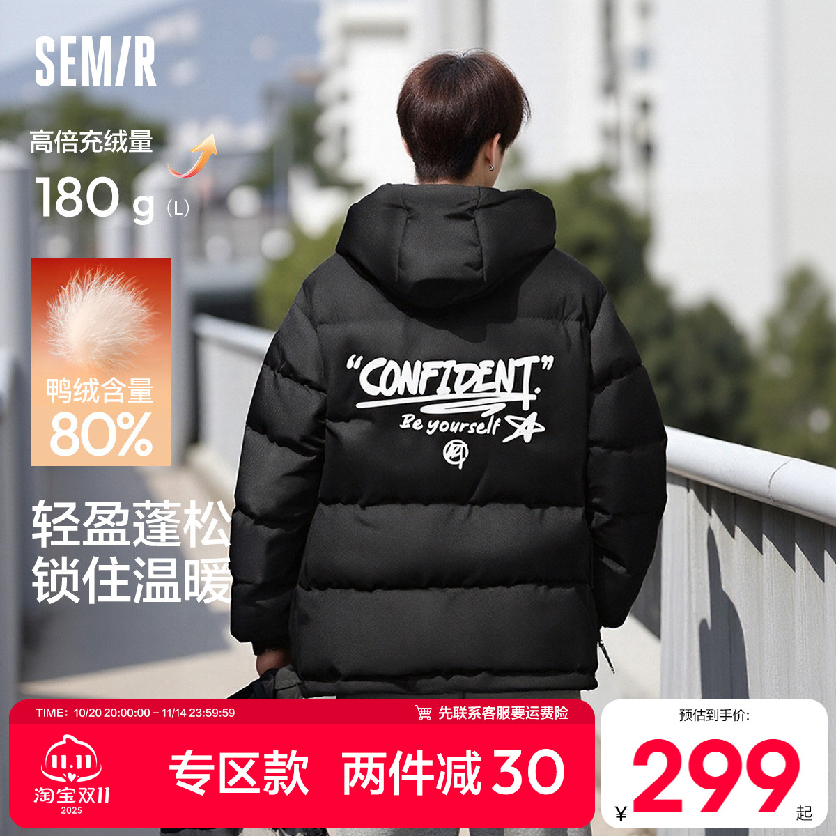 [商场同款]森马羽绒服男2025新款宽松连帽冬装黑色男士大印花外套