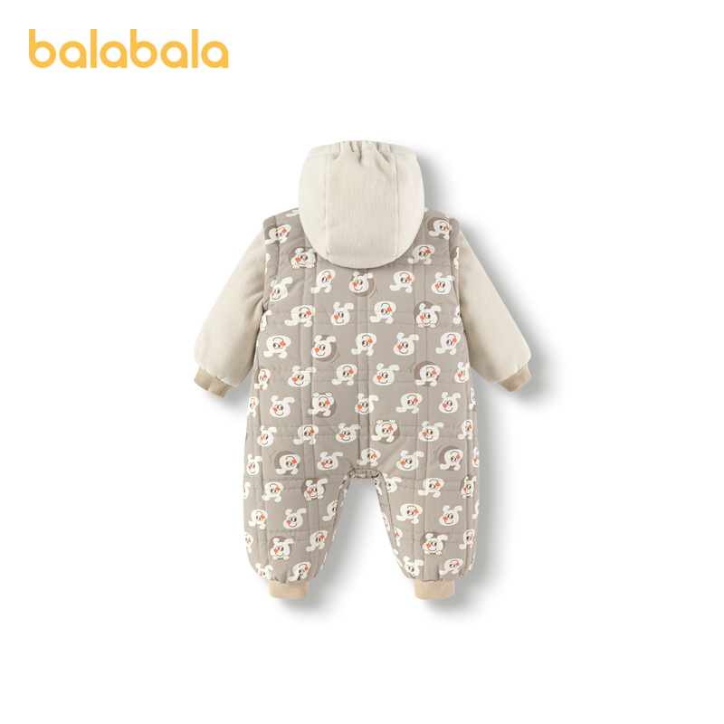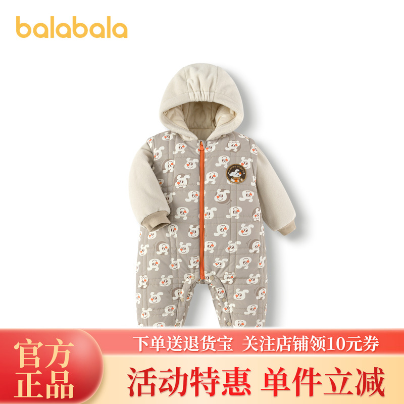 巴拉巴拉宝宝外出连体衣男童哈衣爬服抱衣冬装撞色连帽保暖可爱萌