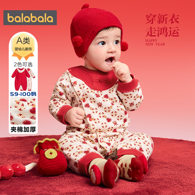 巴拉巴拉宝宝连体衣秋冬季款新生儿红色哈衣男童女童夹棉加厚衣服
