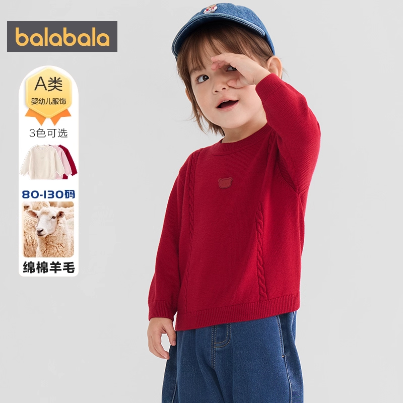 巴拉巴拉宝宝针织衫男童女童毛衣冬装2025新款童装婴儿套头羊毛衫