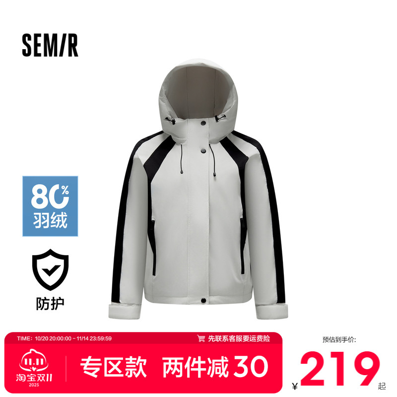 森马羽绒服女撞色拼接潮酷保暖衣服春季三防宽松连帽外套户外甜美