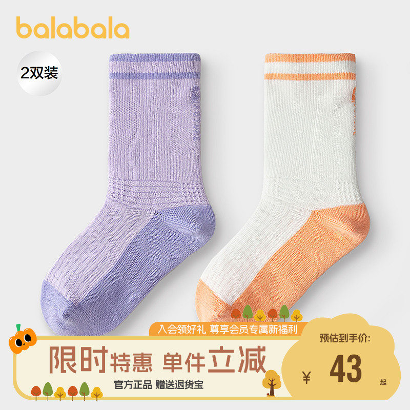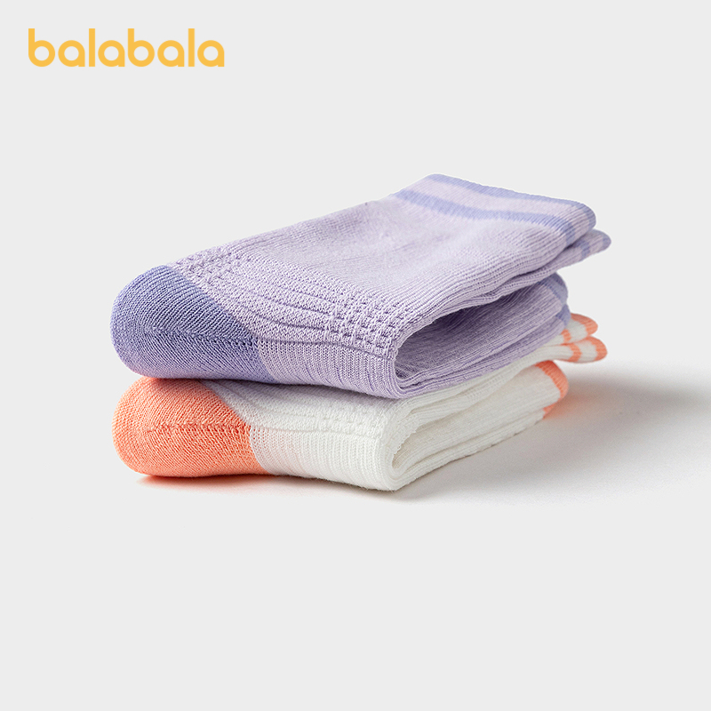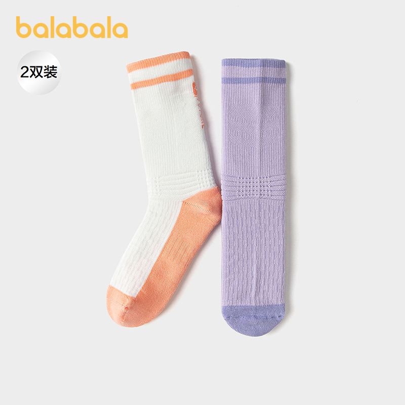 巴拉巴拉儿童袜子秋冬女童棉袜中大童运动风袜两双装