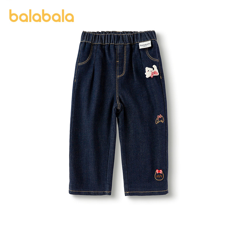 【商场同款】巴拉巴拉女童牛仔裤直筒裤秋冬2025新款长裤绣花洋气
