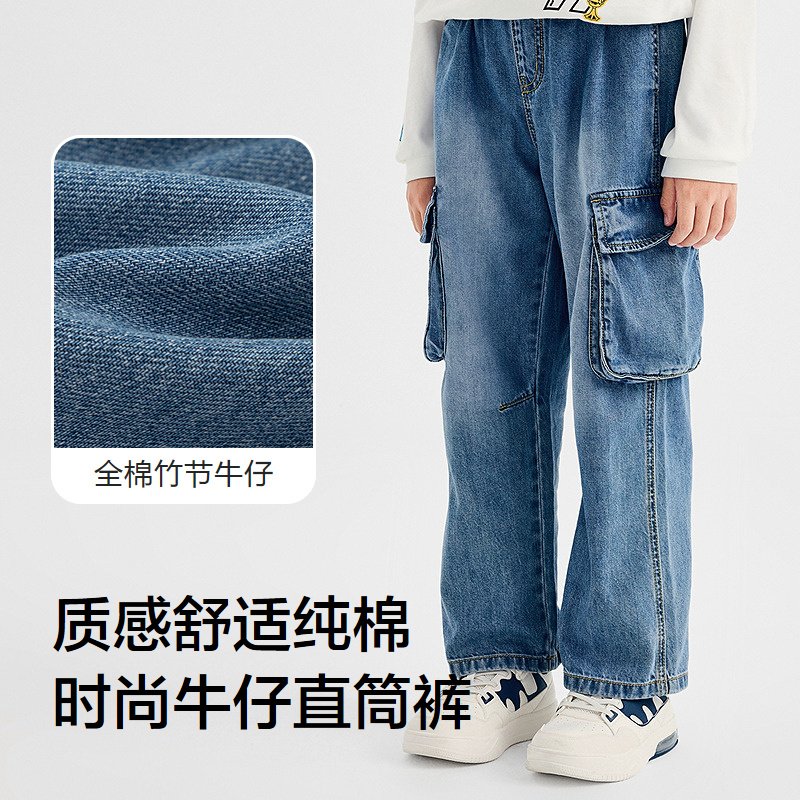 【商场同款】巴拉巴拉童装儿童裤子男童长裤2025秋新款牛仔直筒裤