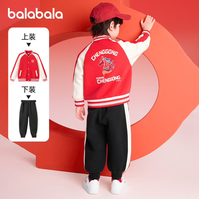 巴拉巴拉童装男童套装儿童棒球服小童宝宝红色拜年服2025秋冬新款