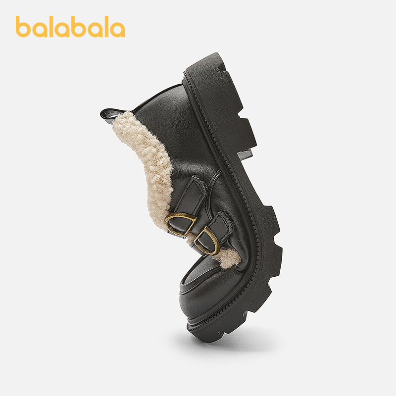 巴拉巴拉儿童黑色鞋子女童公主鞋大童加绒鞋子2026冬季新款童鞋厚