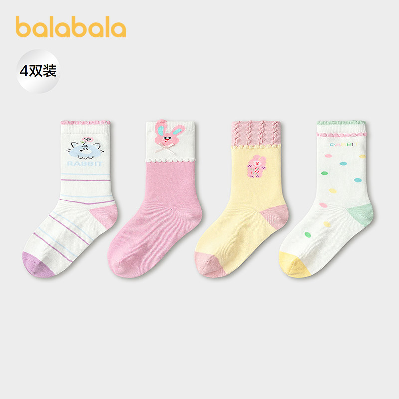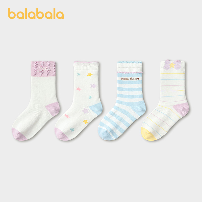 【balaOne】巴拉巴拉儿童袜子春秋季女童提花甜美短袜柔软四双装