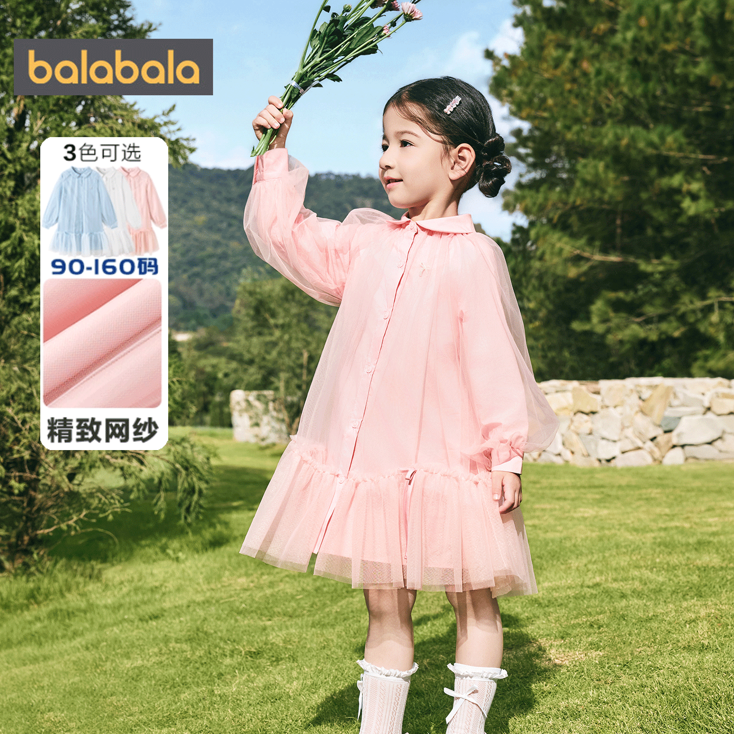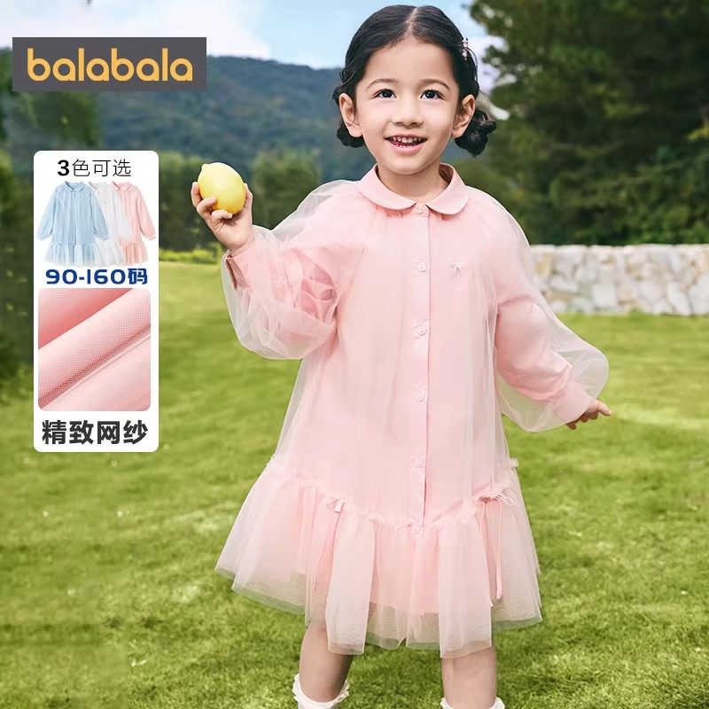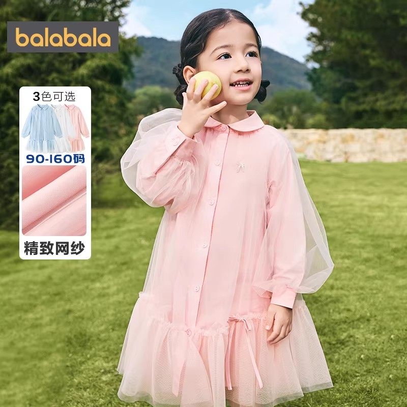 巴拉巴拉女童连衣裙中大童公主裙春装2026新款童装宝宝网纱裙子潮