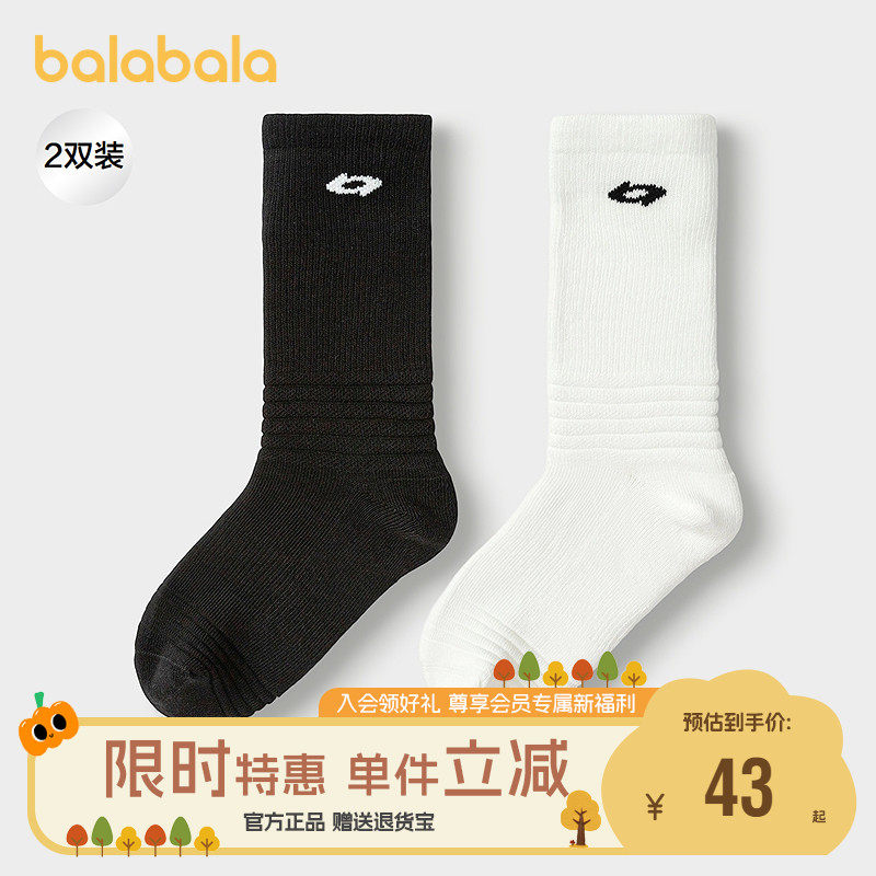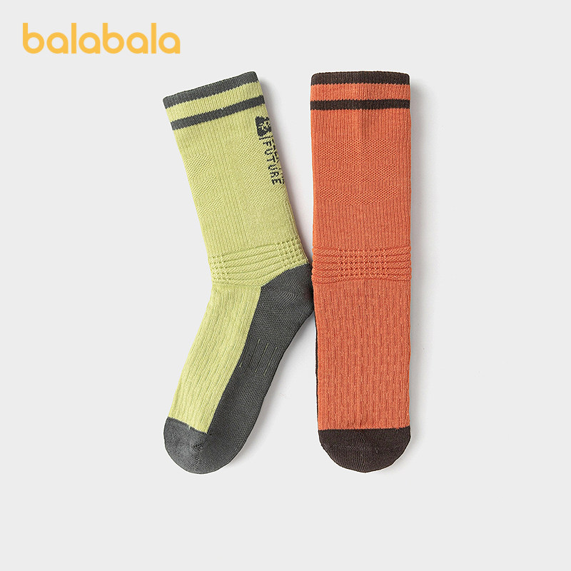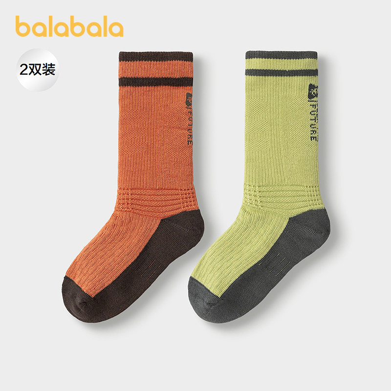 巴拉巴拉儿童袜子秋冬男童棉袜中大童运动风袜两双装