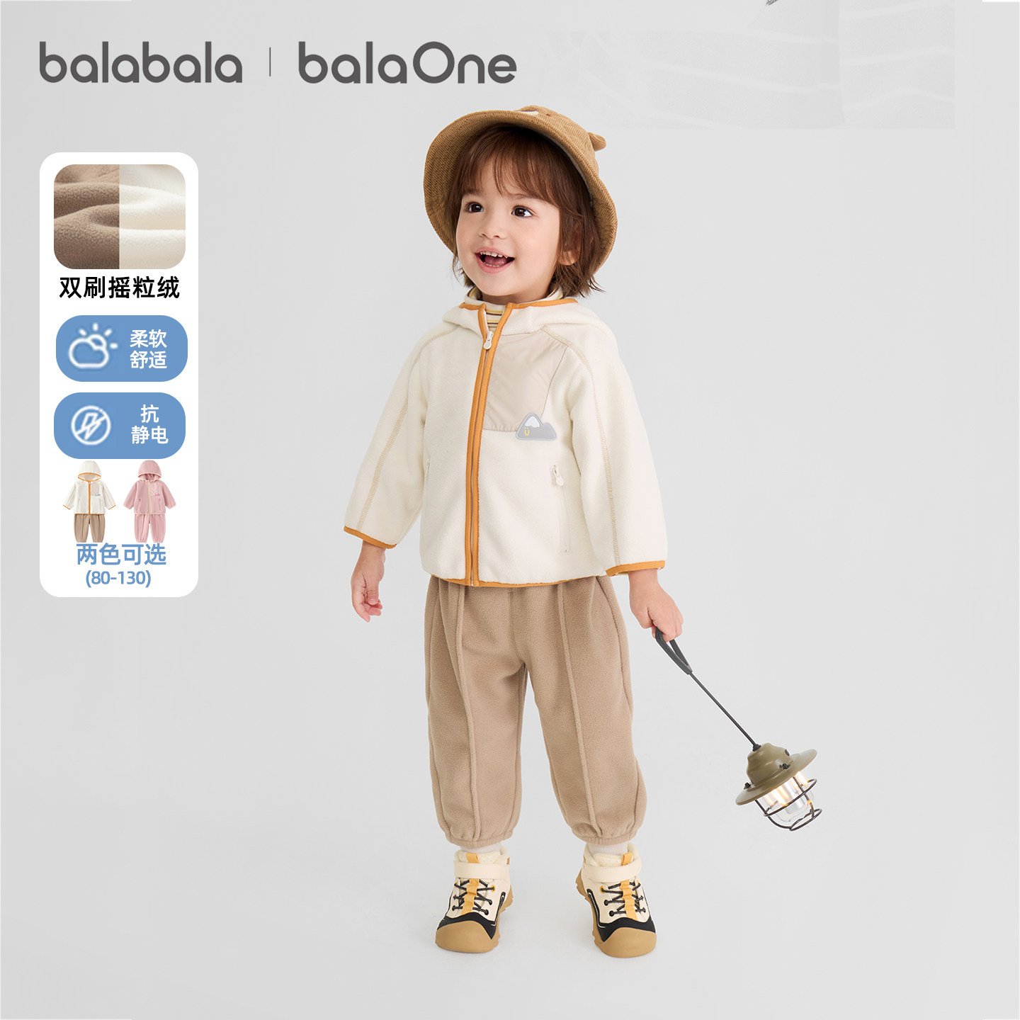 巴拉巴拉儿童运动套装女童男童新款童装25秋冬摇粒绒抗静电两件套