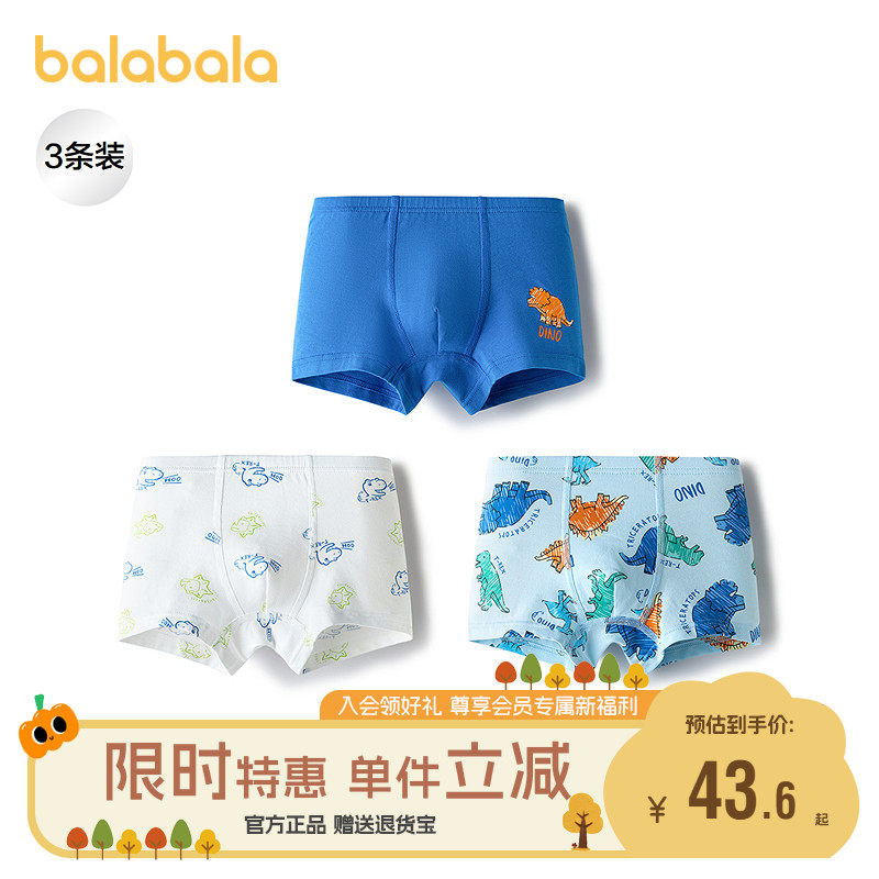 【balaOne】巴拉巴拉儿童内裤男童四角短裤平角不夹PP抗菌三条装