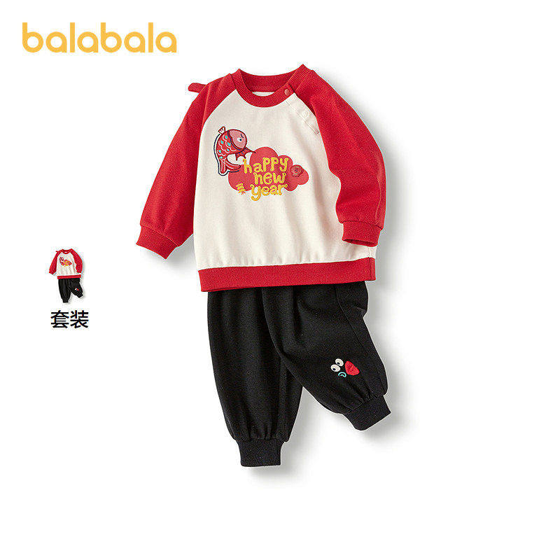巴拉巴拉童装衣服宝宝周岁礼服套装婴儿拜年服新中式喜庆可爱萌趣